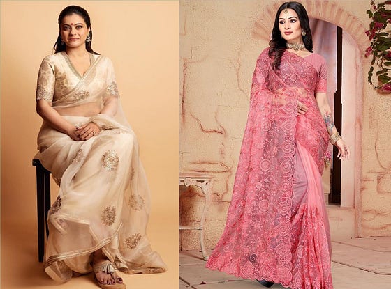 Best Collectives With Kajol Half N Half Saree :